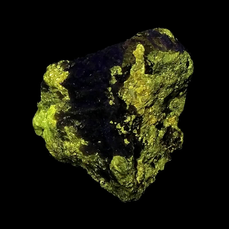 Small piece of powellite. Bright yellow fluorescence under shortwave UV light.