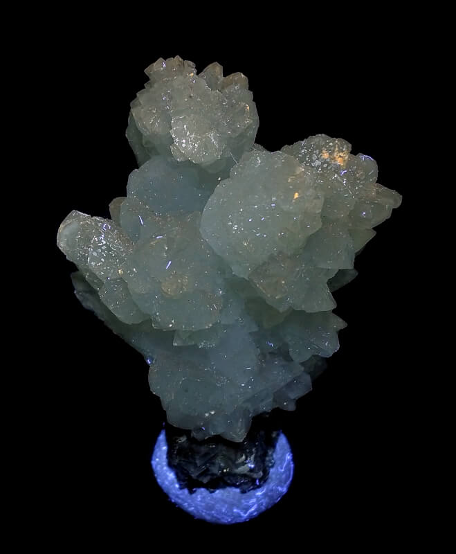 Aragonite tree from Mapimí, Mexico. Fluorescent “dirty white” under longwave UV light.