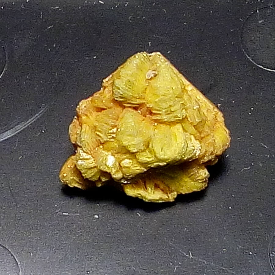 Very bright green fluorescent autunite. Comparing my fluorescence spectrum with the one on the fluomin webpage, it looks like mine is shifted at longer wavelengths. My spectrum matches more the uranocircite spectrum on fluomin. Streuberg Quarry is the type locality for uranocircite, so maybe this is not autunite after all…