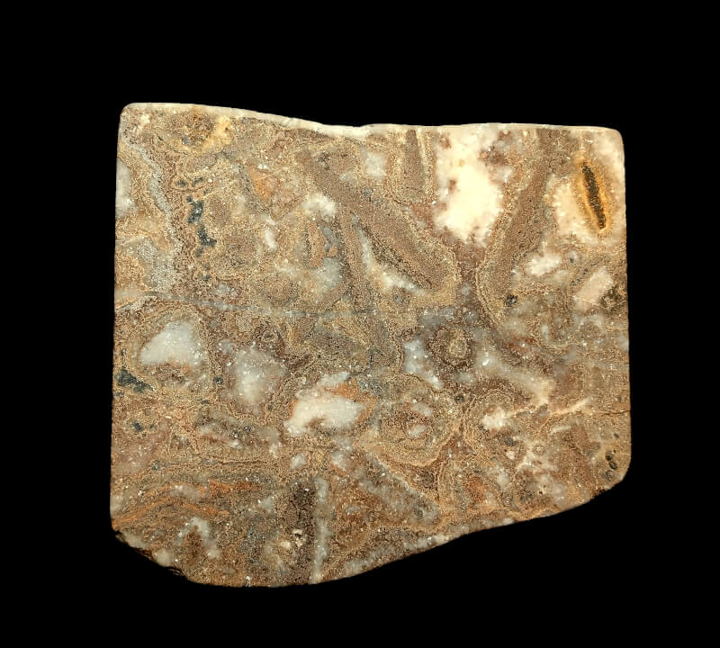 Sphalerite var Schalenblende and dolomite. The sphalerite fluoresces orange/brown while the dolomite fluoresces white; under longwave UV light.