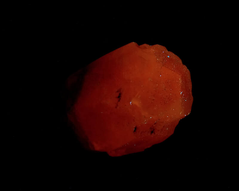 SC268 - Calcite Locality: Connecticut, USA (MINDAT) Size: 1 x 1 x 2 cm - Thumbnail (<1 inch) Weight: 5.2 g minID: EGN-PPL Little calcite crystal. Photo in normal light. Fluorescence under longwave UV light (365nm LED). Last update: 31 December 2020