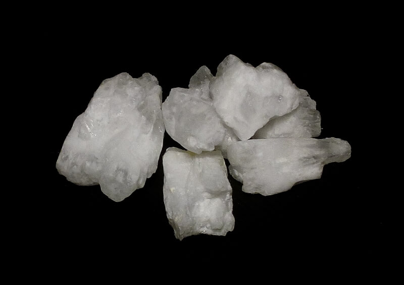 Multiple fragments of celestine. Fluorescent blue/white under any wavelength, with greenish phosphorescence. Fluorescence should be due to organic impurities.