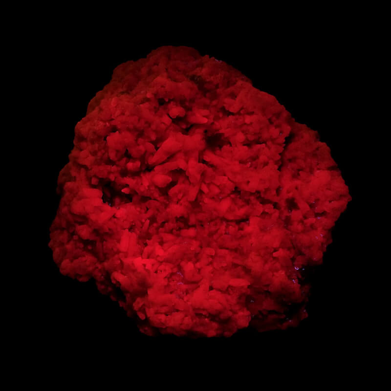 Aggregate of pink corundum (ruby) crystals. Very strong red fluorescence under longwave UV light.