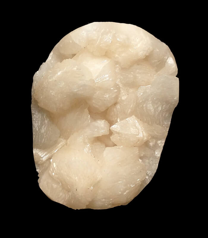 Powellite crystal on stilbite. The powellite fluoresces bright yellow under shortwave UV light. Bigger crystal is 10mm.