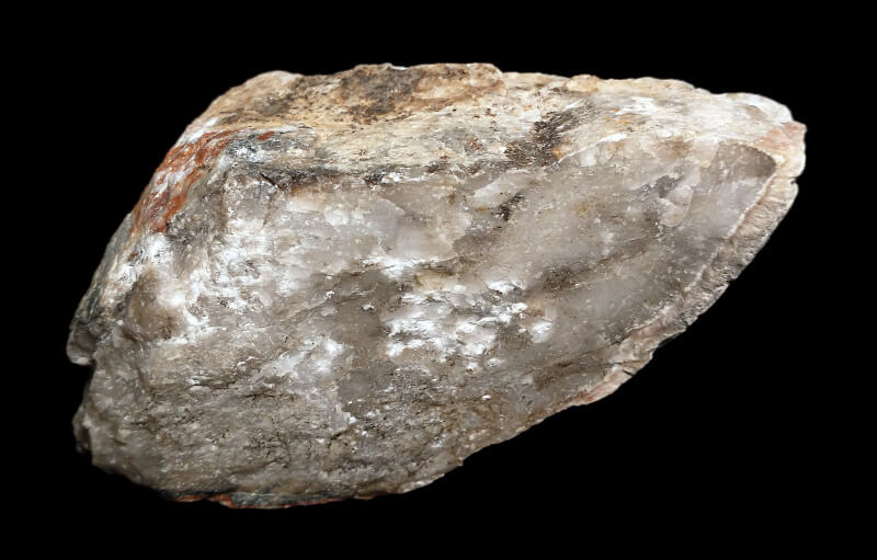 Bright red fluorescent eucryptite, best under shortwave UV light.