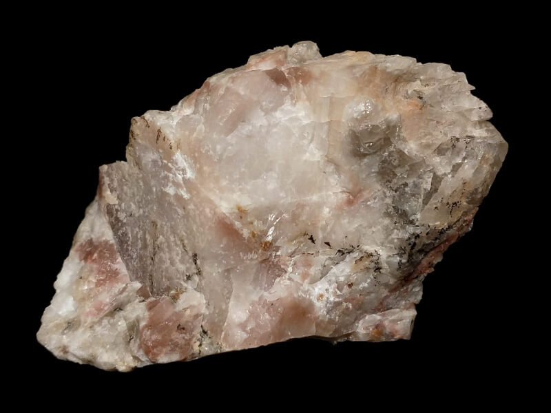 Eucryptite in matrix. Under shortwave UV light the eucryptite fluoresces red, while the matrix fluoresces weak green.