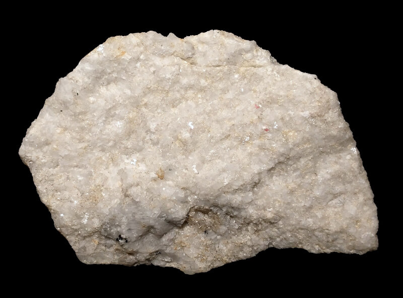 Chondrodite and diopside in marble. Under shortwave UV light they fluoresce yellow and blue, respectively.