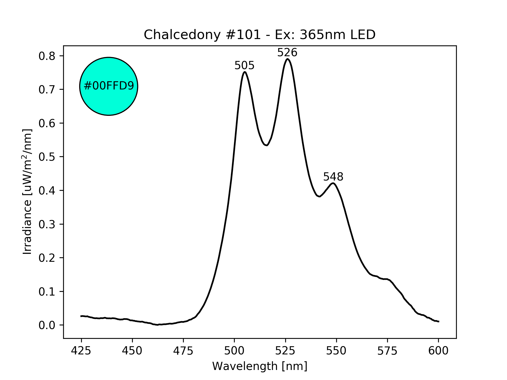 | Chalcedony (#101) | Tonopah, Arizona, USA | 365nm LED | UO22+ | |