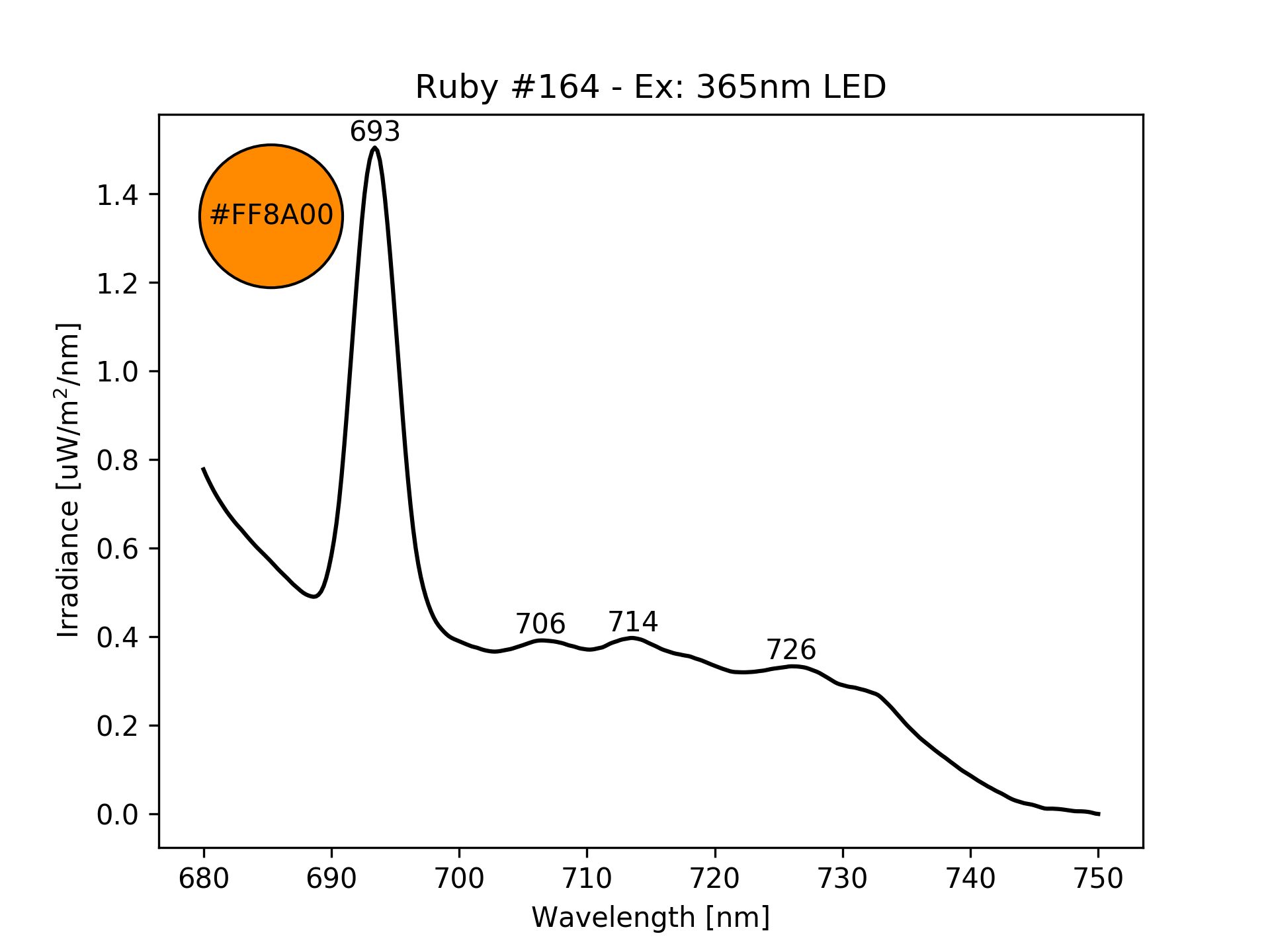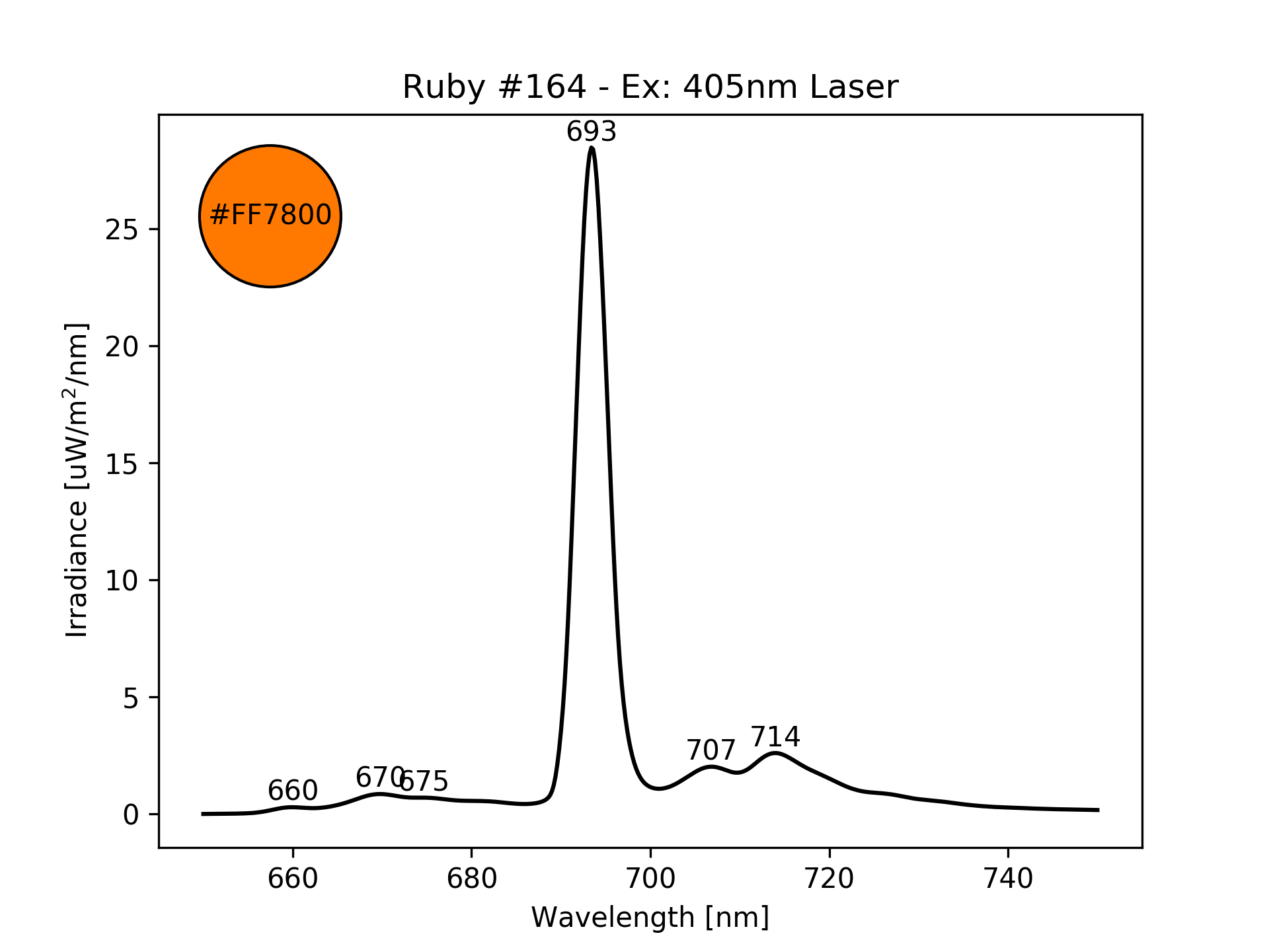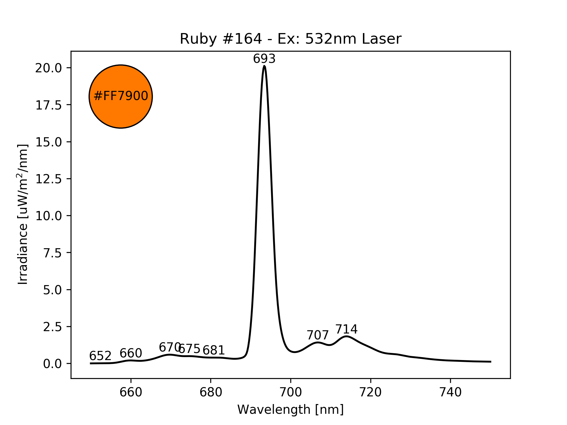 | Corundum/Ruby (#164) | Unknown | 664nm Laser | Cr3+ | |