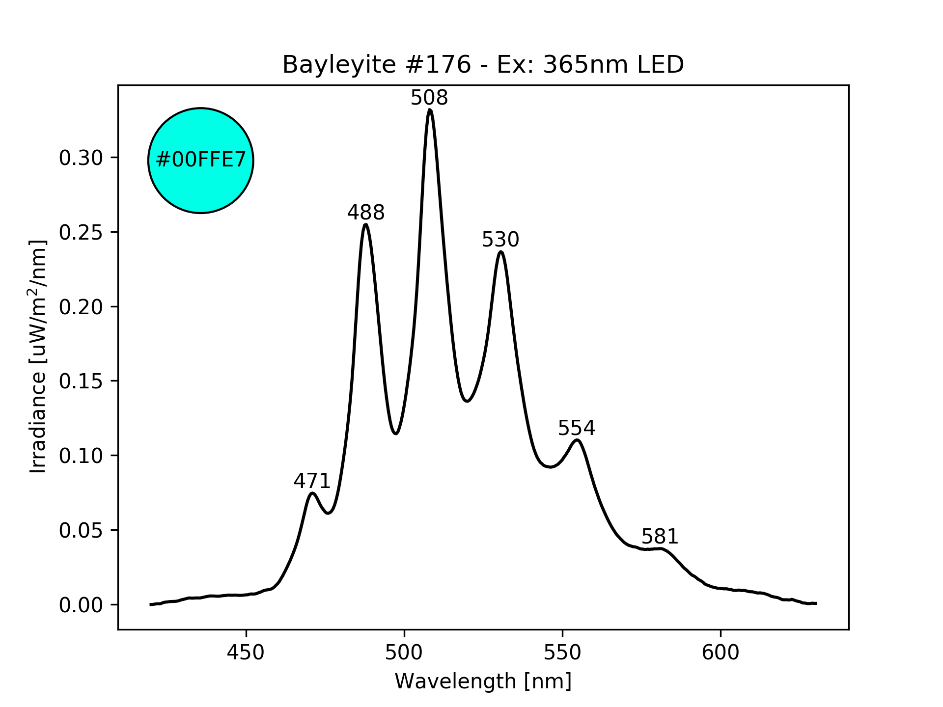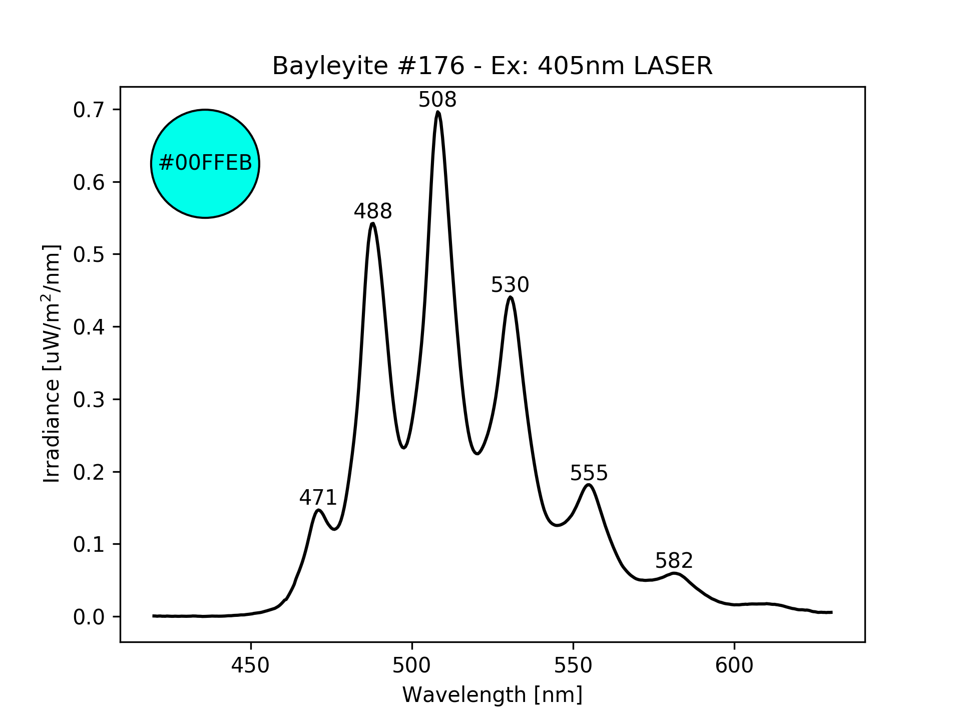| Bayleyite (#176) | Hideout Mine, Utah, USA | 405nm Laser | UO22+ | |