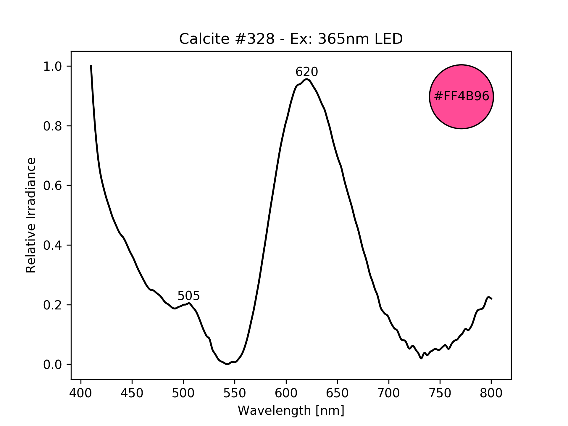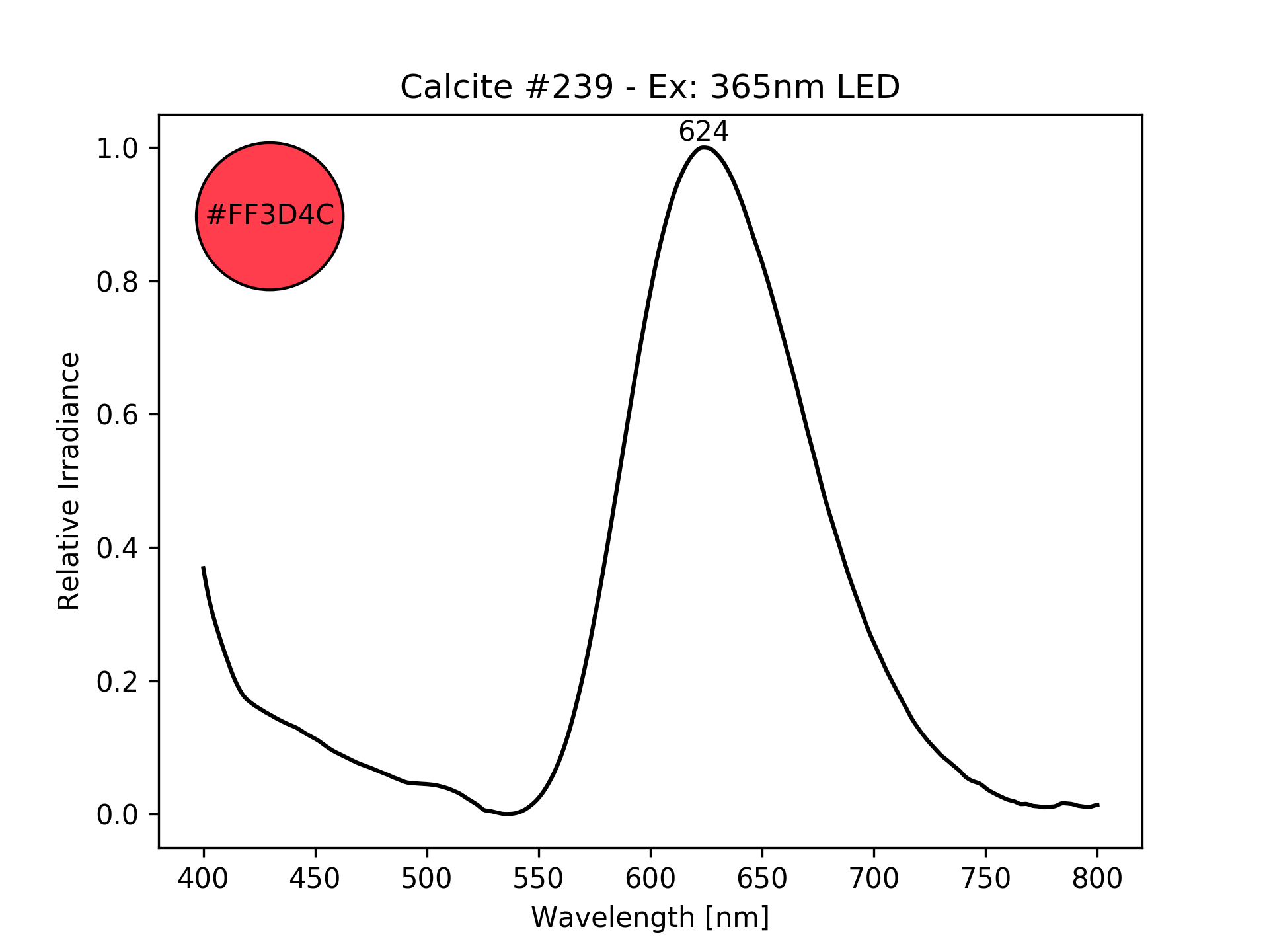 | Calcite (#239) | Unknown | 365nm LED | Mn2+ | |