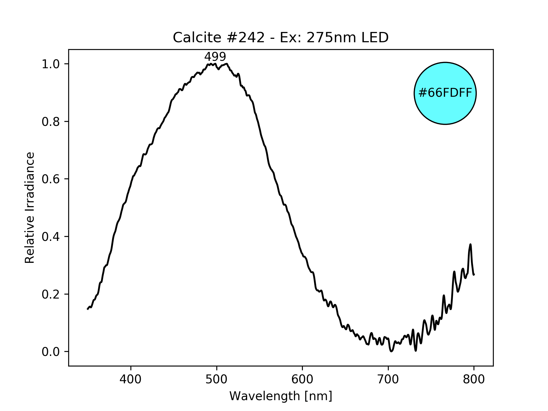 | Calcite (#231) | Citrus Co., Florida, USA | 275nm LED | Organic? | |