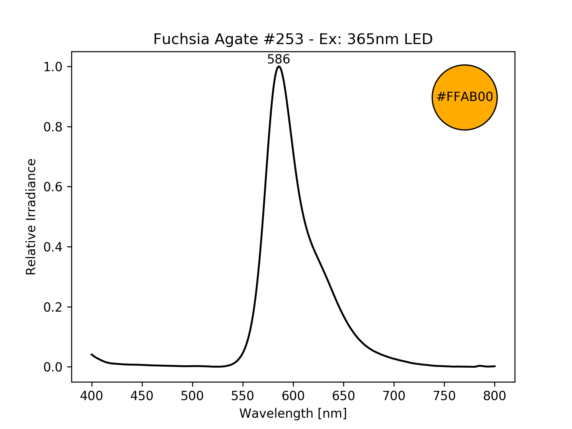 | Fuchsia Agate (#253) | Unknown | 365nm LED | Dye | |
