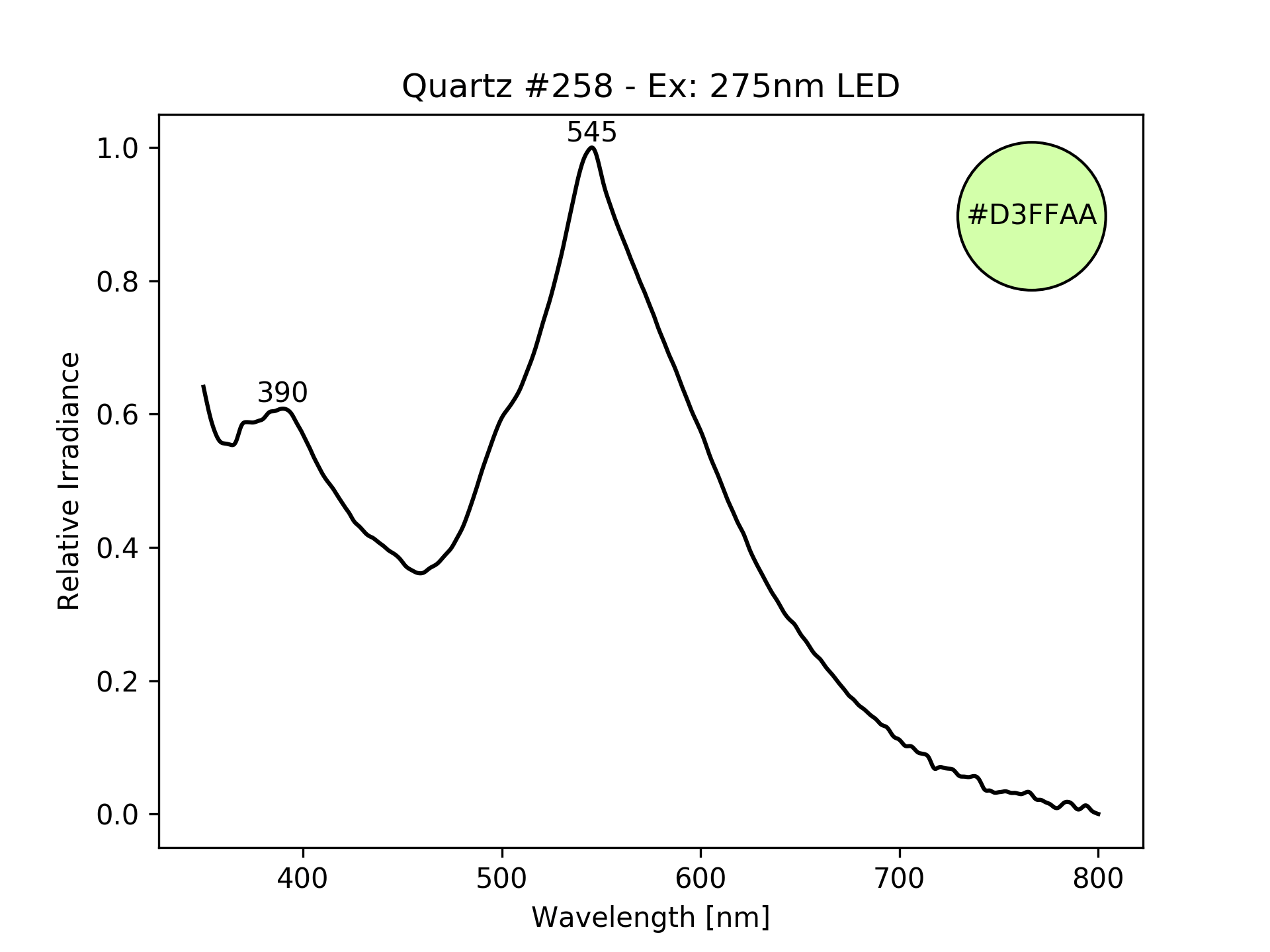 | Quartz (#258) | La Sassa, Tuscany, Italy | 275nm LED | PAH, REE, UO22+ | |