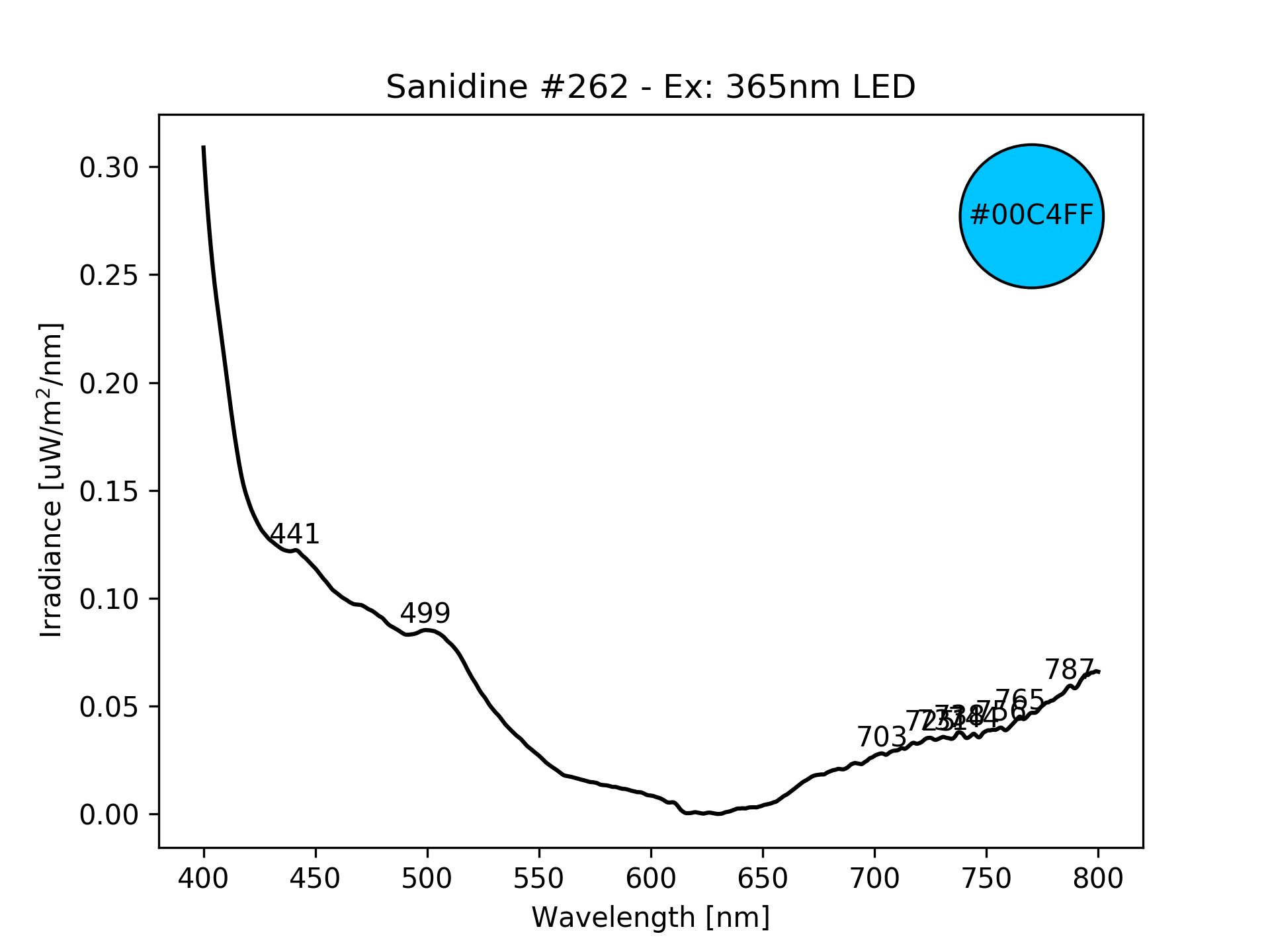 | Sanidine (#262) | In den Dellen quarries, Mendig, Germany | 365nm LED | ?? | |