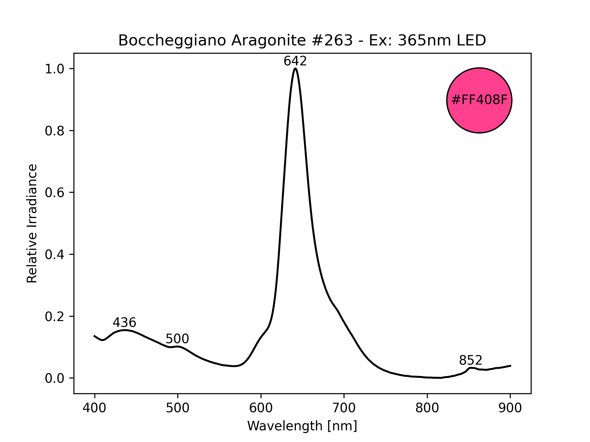 | Aragonite (#263) | Boccheggiano Mines, Tuscany, Italy | 365nm LED | Sm3+ | |