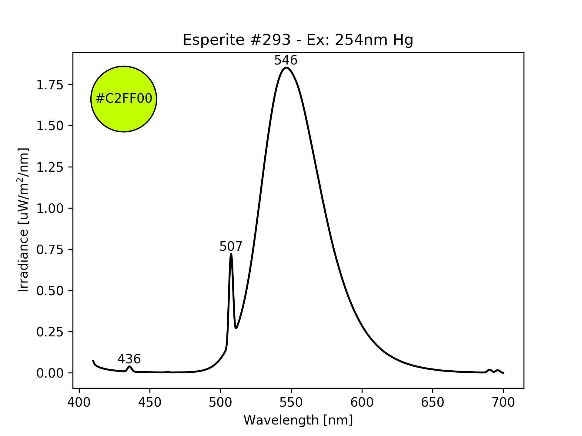 | Esperite (#293) | Franklin Mine, New Jersey, USA | 254nm Hg | Mn2+ | |