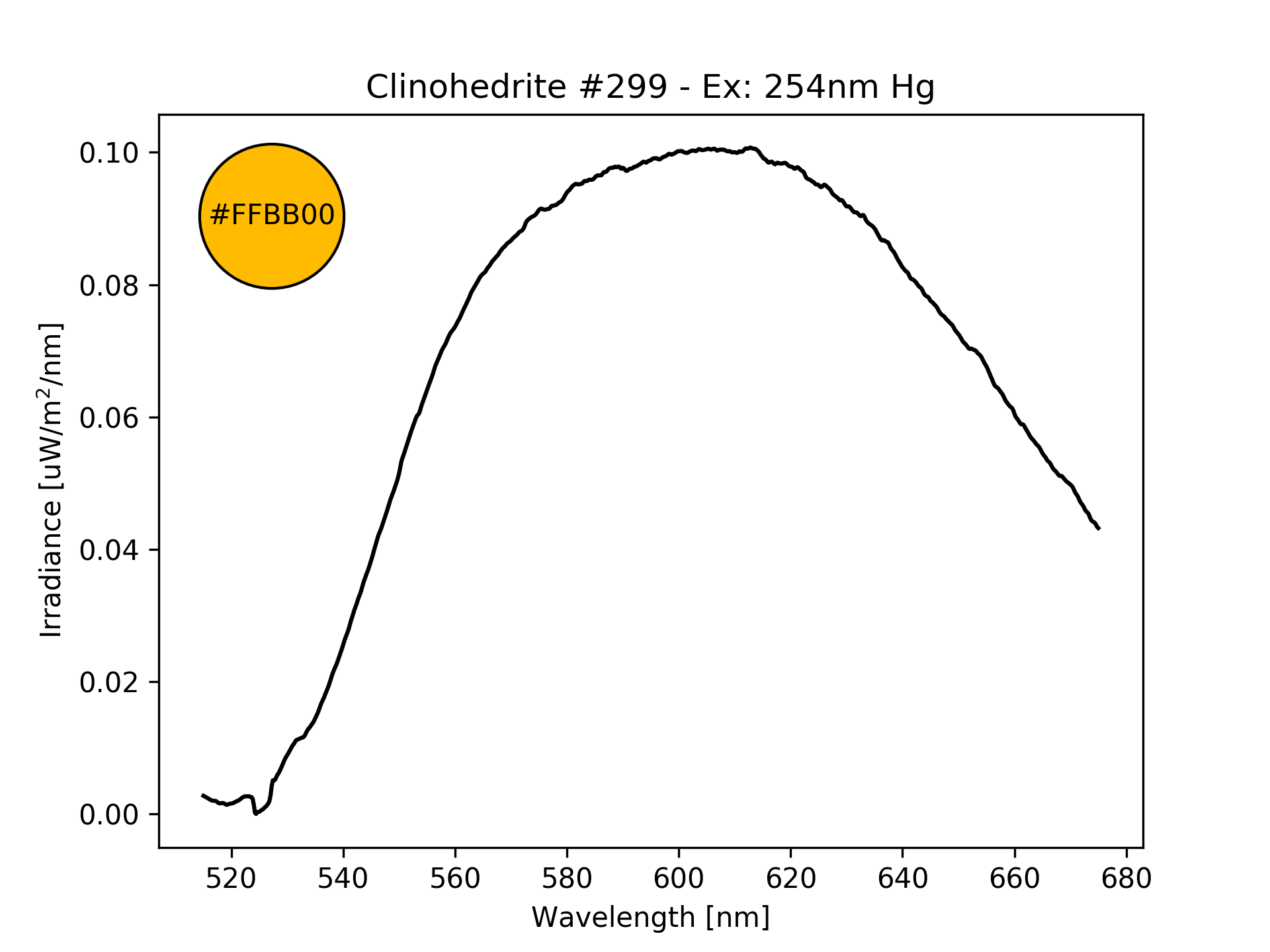 | Clinohedrite (#299) | Franklin Mine, New Jersey, USA | 254nm Hg | Mn2+ | |