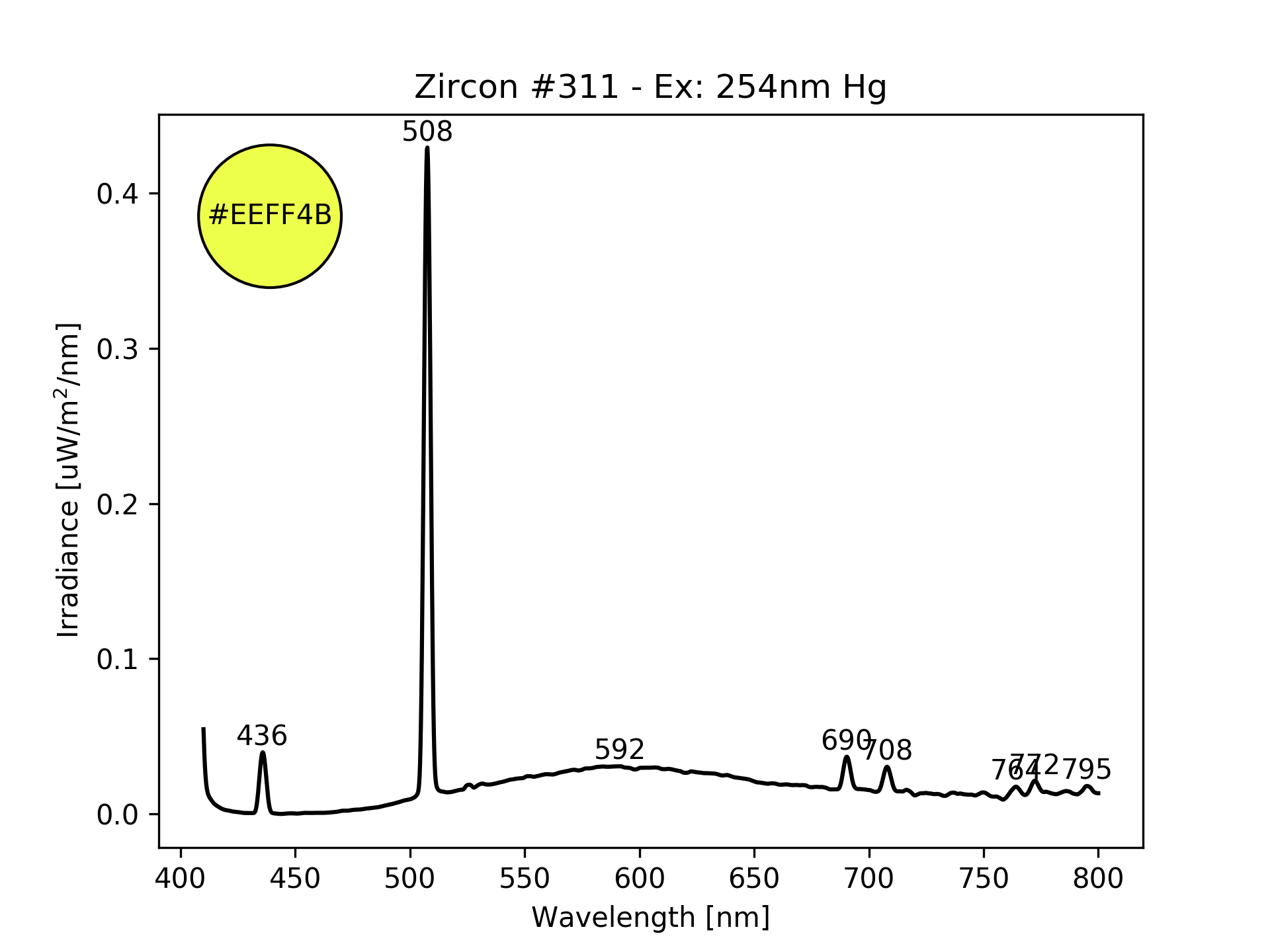 | Zircon (#311) | Malawi | 254nm Hg | Radiation | |