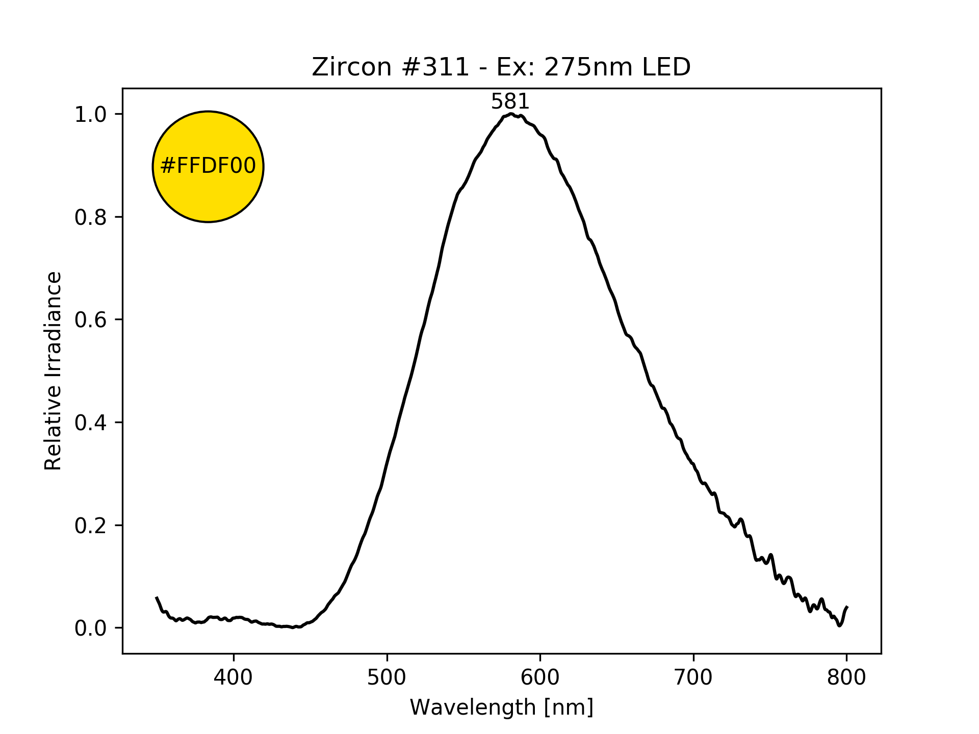 | Zircon (#311) | Malawi | 275nm LED | Radiation | |