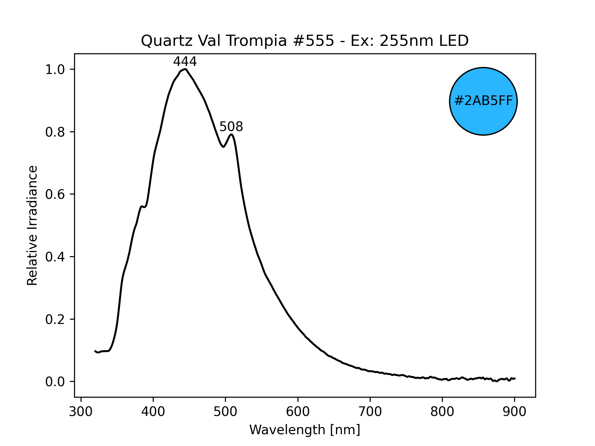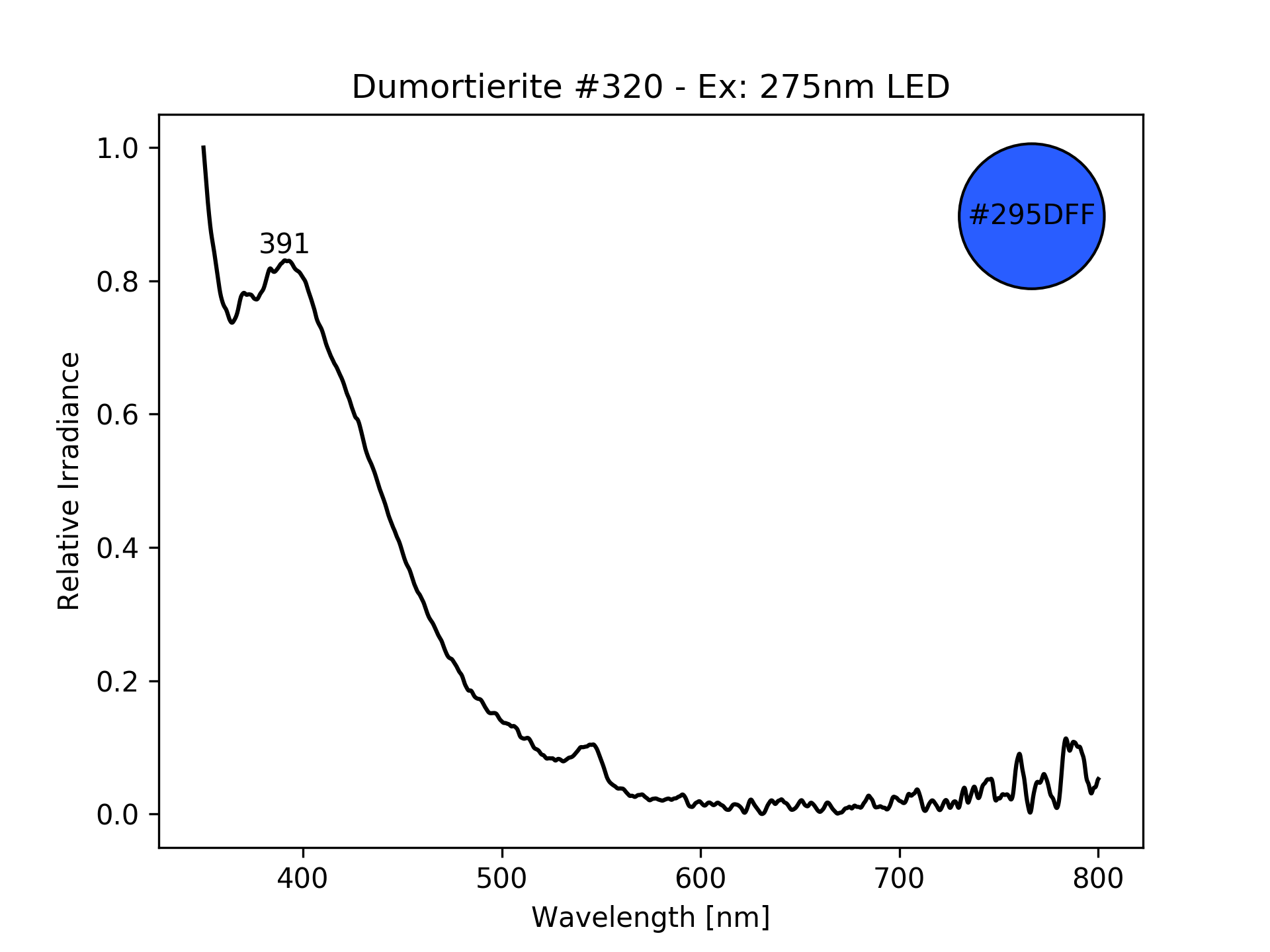 | Dumortierite (#320) | Vaca Morta quarry, Brazil | 275nm LED | ?? | |