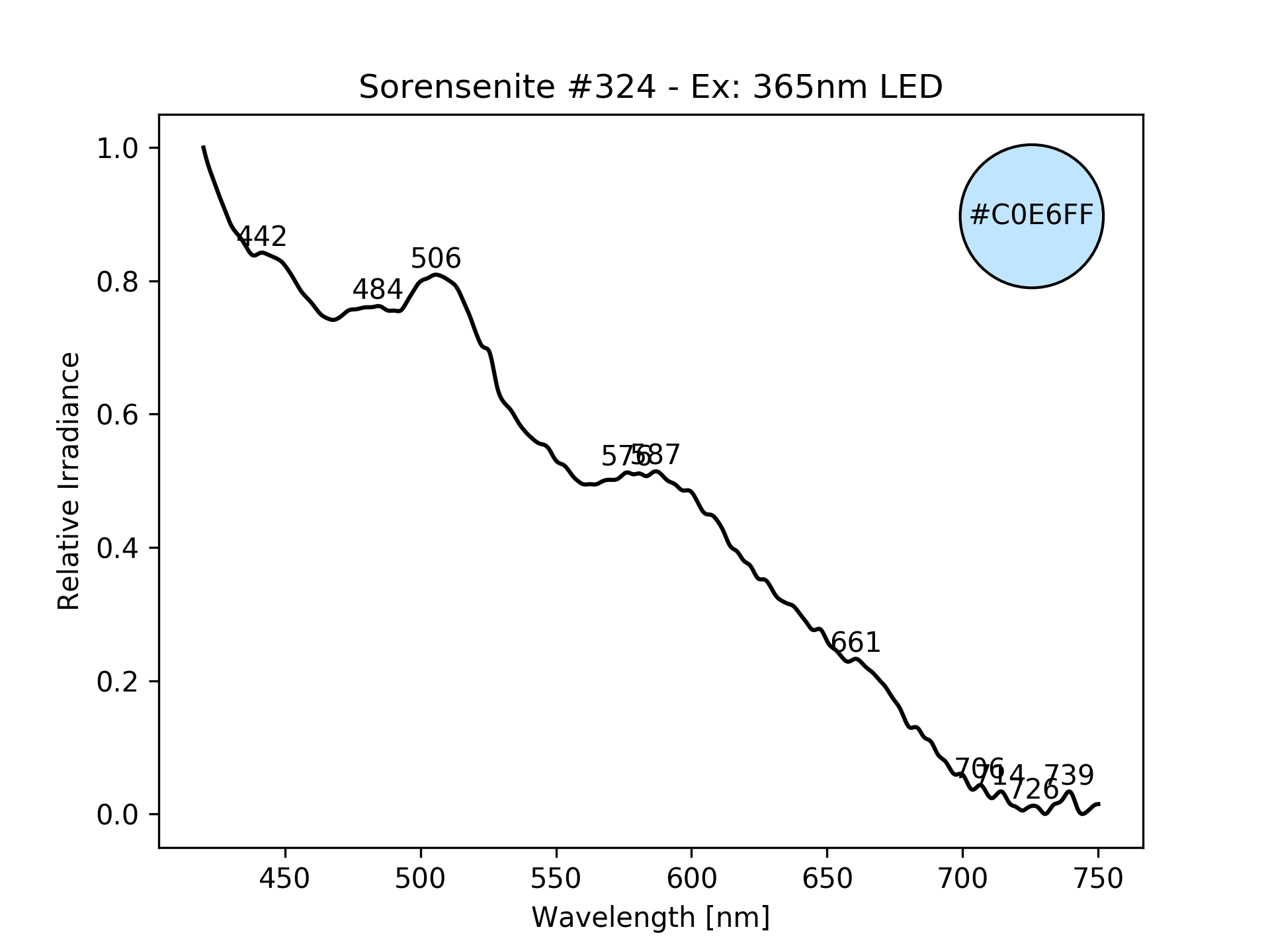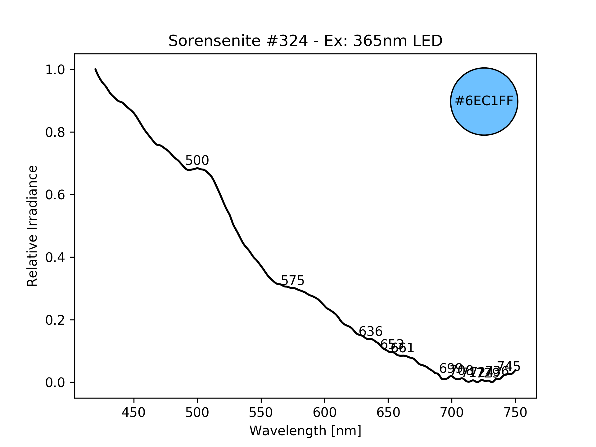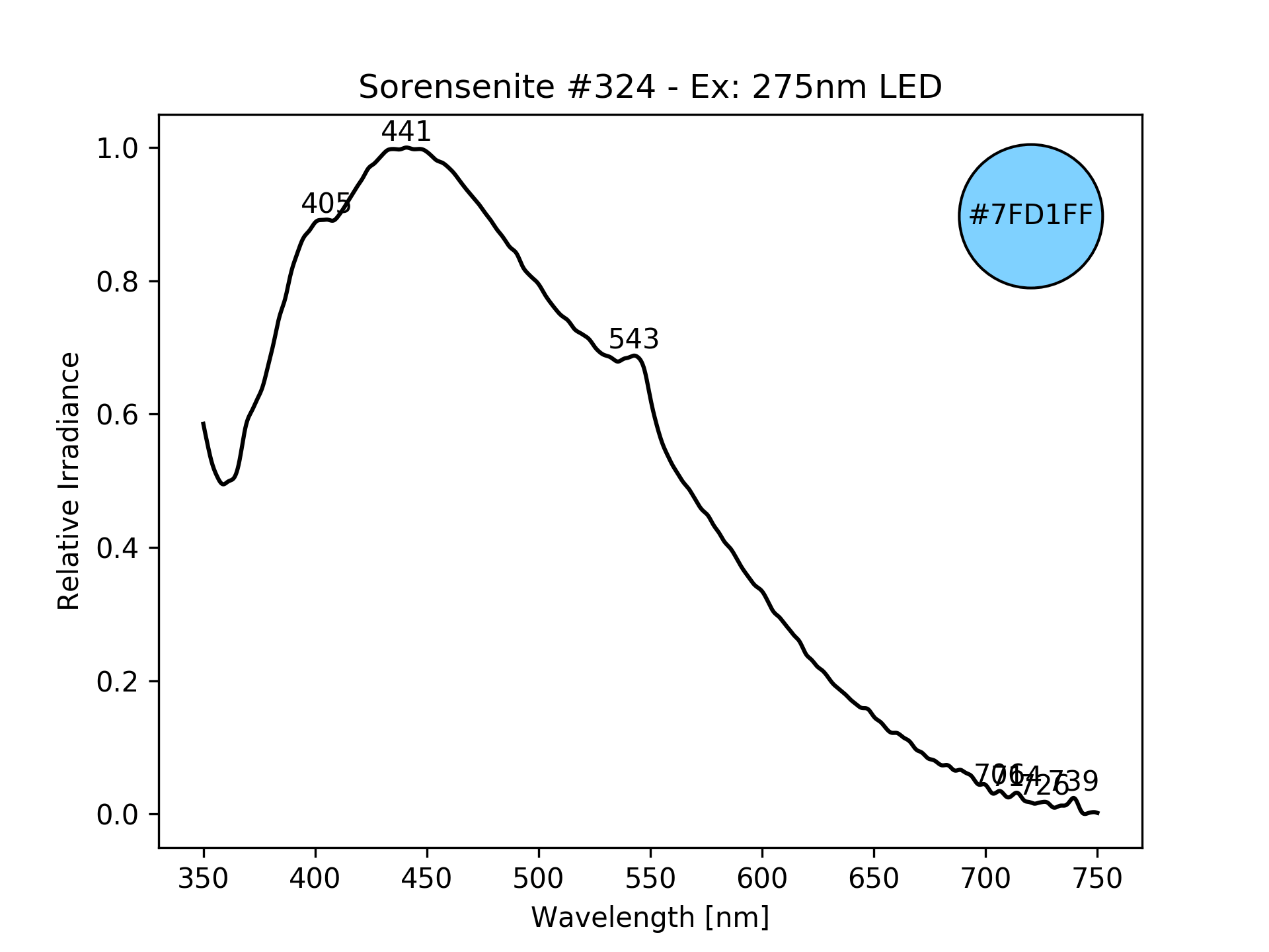 | Sorensenite (#324) | Kvanefjeld, Ilímaussaq, Greenland | 275nm LED | ?? | |