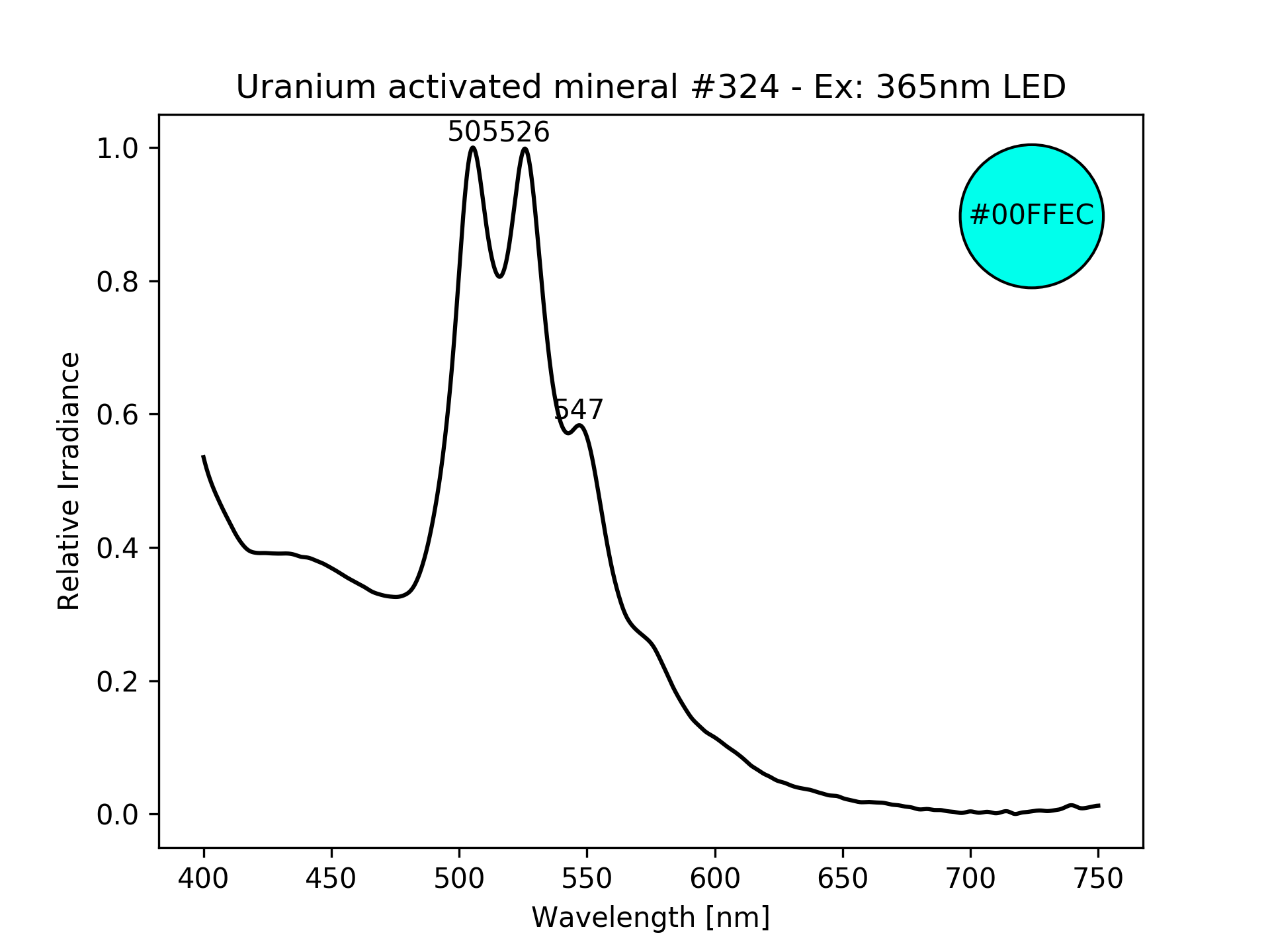 | Unknown (#324) | Kvanefjeld, Ilímaussaq, Greenland | 365nm LED | UO22+ | |