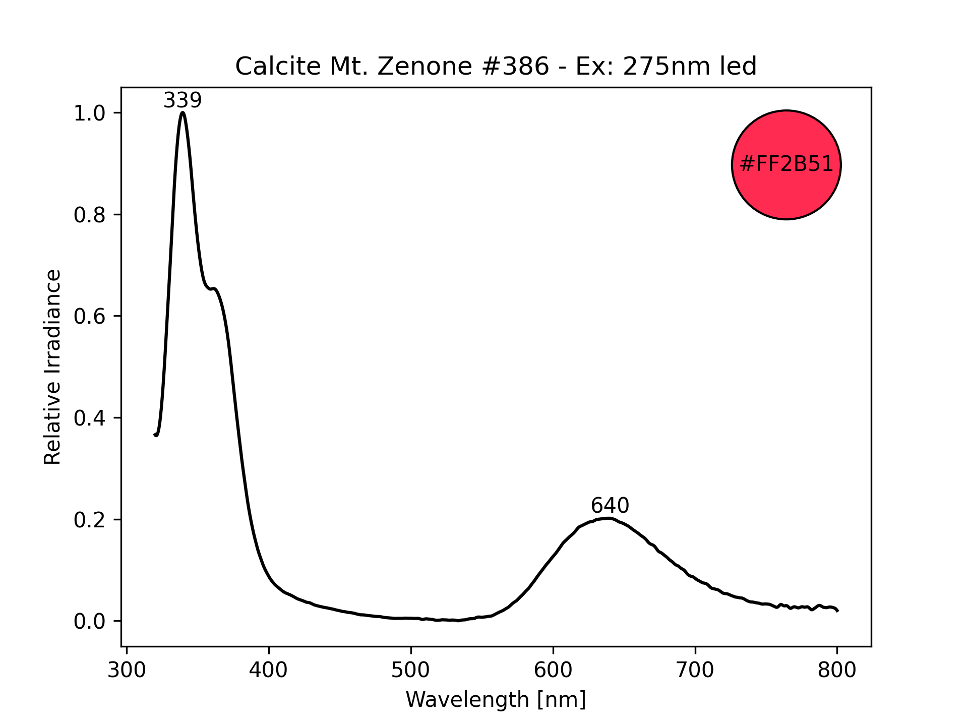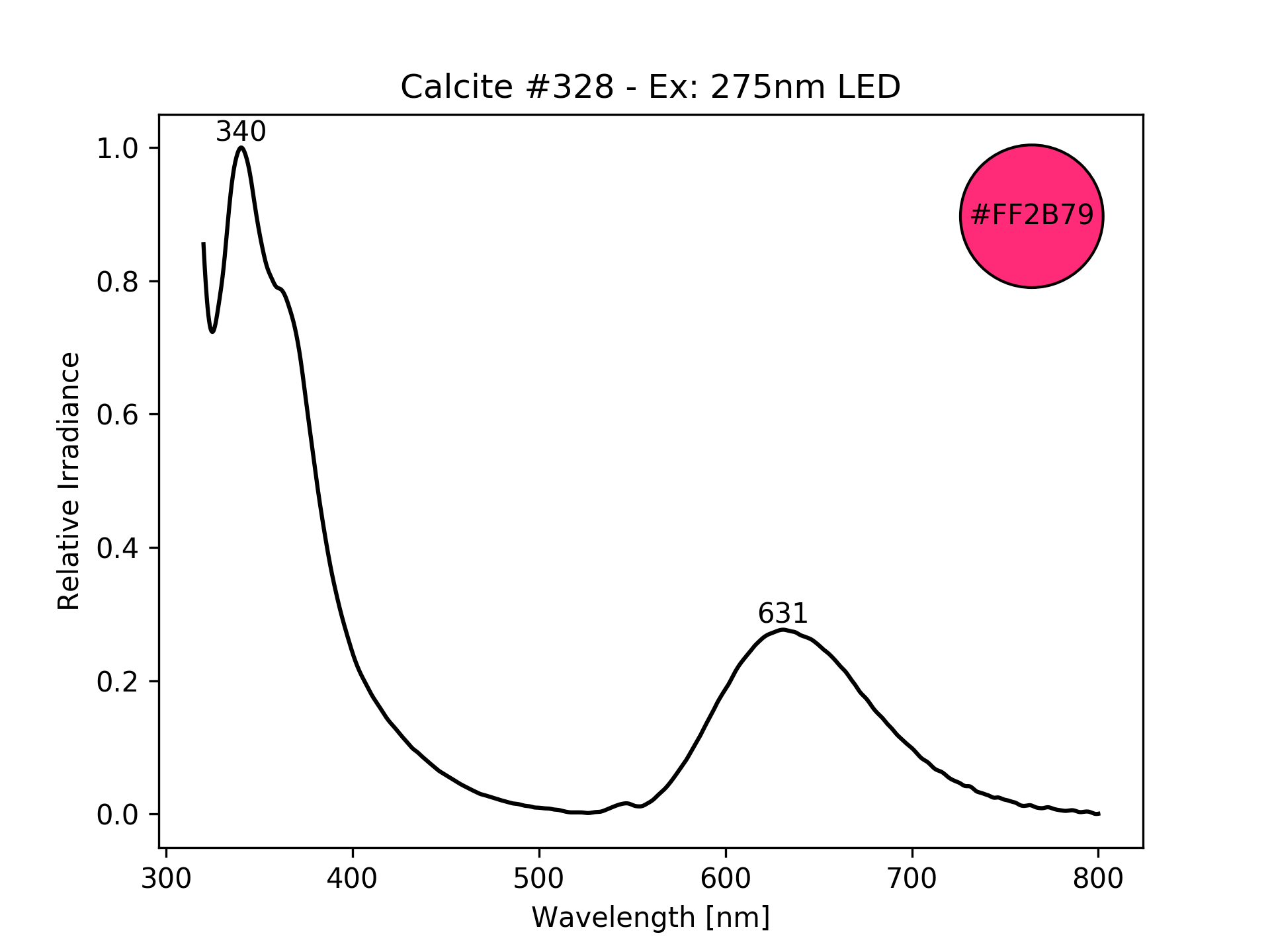 | Calcite (#328) | Fujian, China | 275nm LED | Mn2+ | |