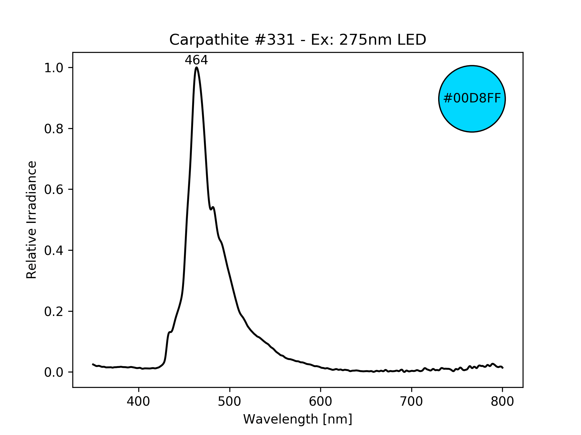 | Carpathite (#331) | Picacho Mine, California, USA | 275nm LED | PAH | |