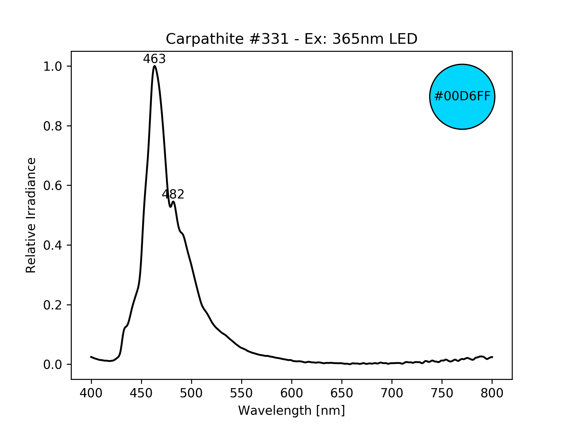 | Carpathite (#331) | Picacho Mine, California, USA | 365nm LED | PAH | |