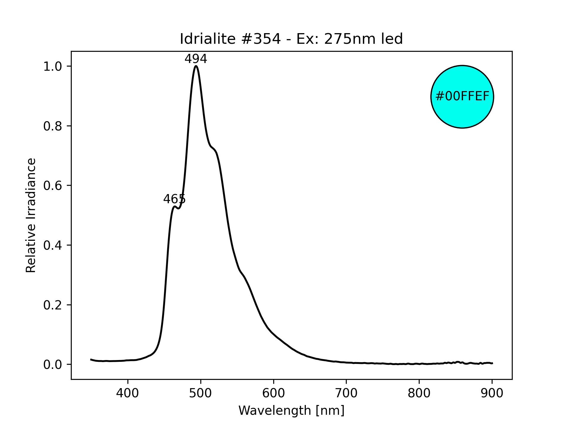 | Idrialite (#354) | Culver-Baer Mine, Sonoma Co., California, USA | 275nm LED | ?? | |