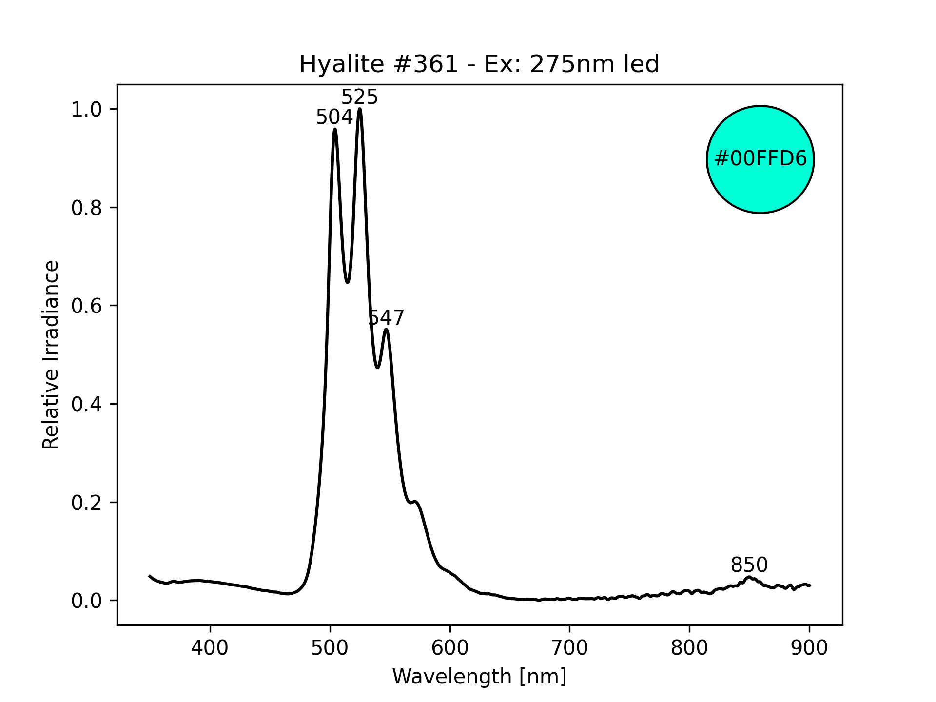 | Hyalite (#361) | Gallatin Co., Montana, USA | 275nm LED | UO22+ | |