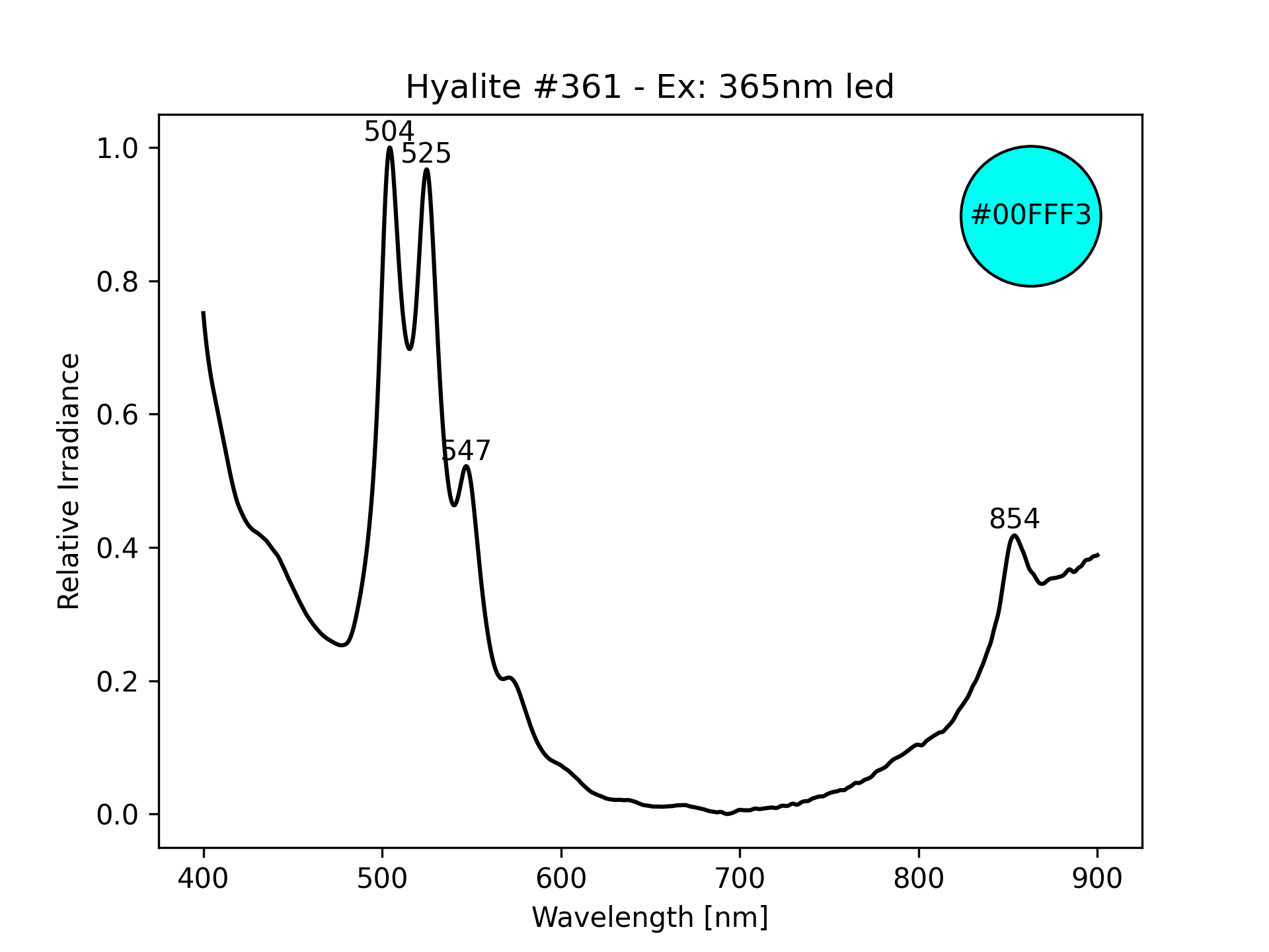 | Hyalite (#361) | Gallatin Co., Montana, USA | 365nm LED | UO22+ | |
