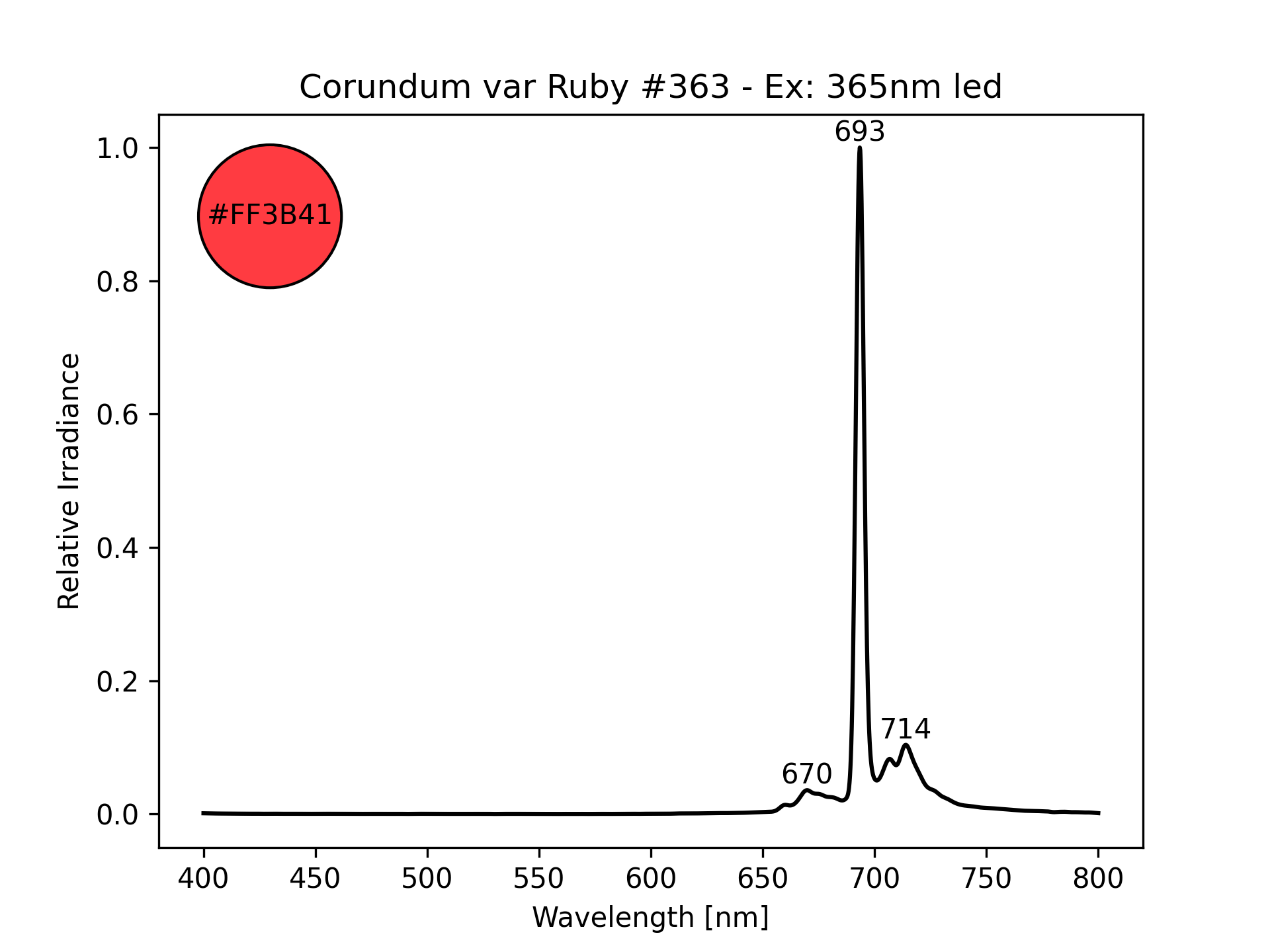 | Corundum/Ruby (#164) | Unknown | 365nm LED | Cr3+ | |