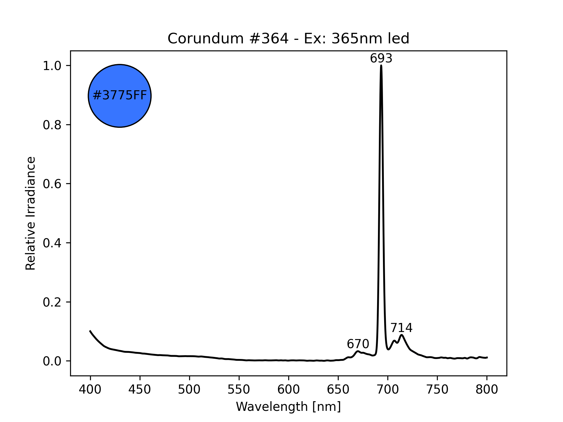| Corundum/Ruby (#164) | Unknown | 405nm Laser | Cr3+ | |