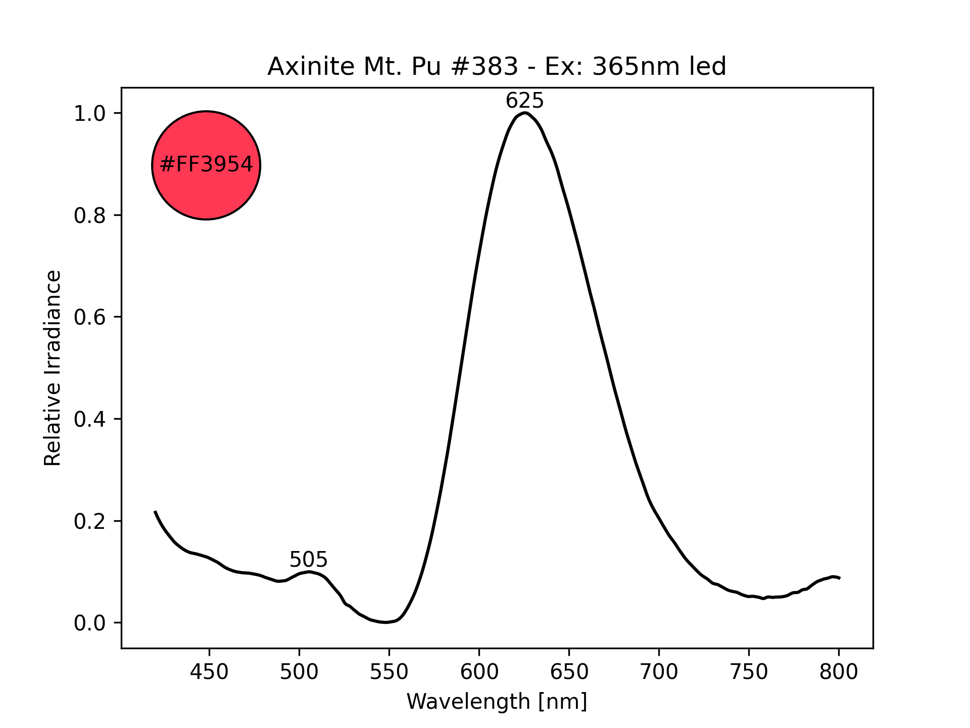 | Axinite (#383) | Monte Pu, Genoa, Liguria, Italy | 365nm LED | Mn2+ | |