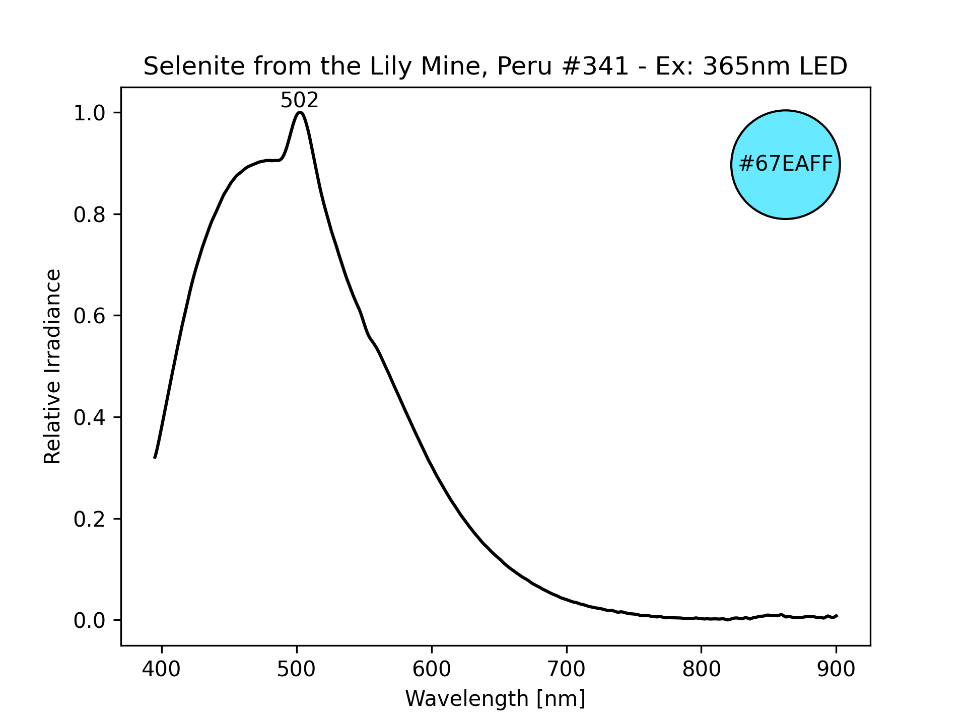 | Gypsum/Selenite (#416) | Lily Mine, Pisco Umay, Ica, Peru | 365nm LED | Organic | |